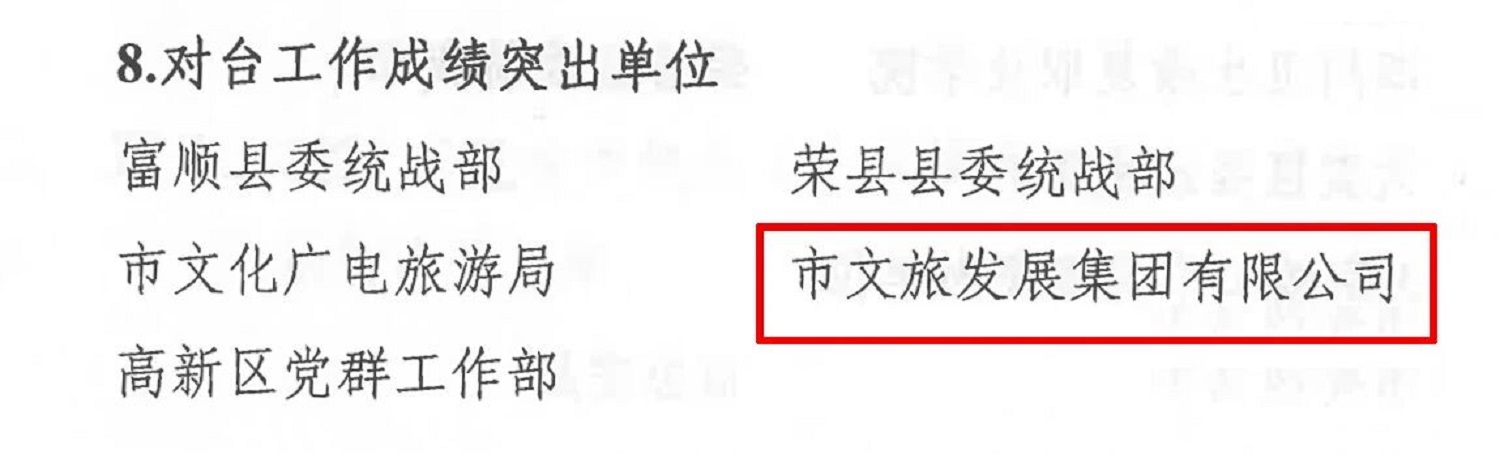近日,自貢市委統(tǒng)戰(zhàn)部發(fā)布《關(guān)于2025年度全市統(tǒng)戰(zhàn)工作成績突出單位、突出個人、創(chuàng)新成果的通報》,對2025年度全市統(tǒng)一戰(zhàn)線各領(lǐng)域涌現(xiàn)出的先進(jìn)典型和優(yōu)秀成果進(jìn)行表揚。自貢市文旅發(fā)展集團(tuán)獲評全市“對臺工作成績突出單位”。