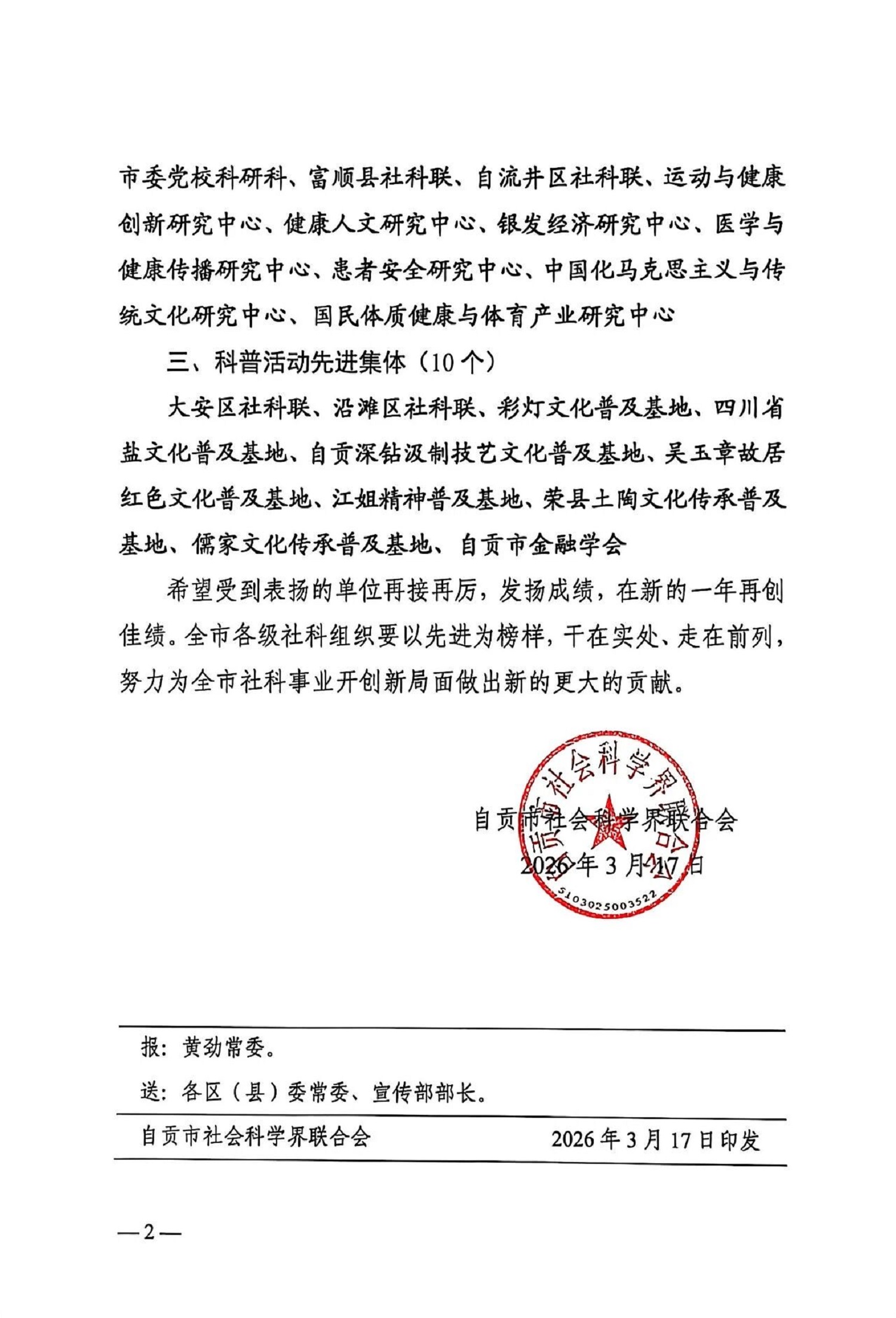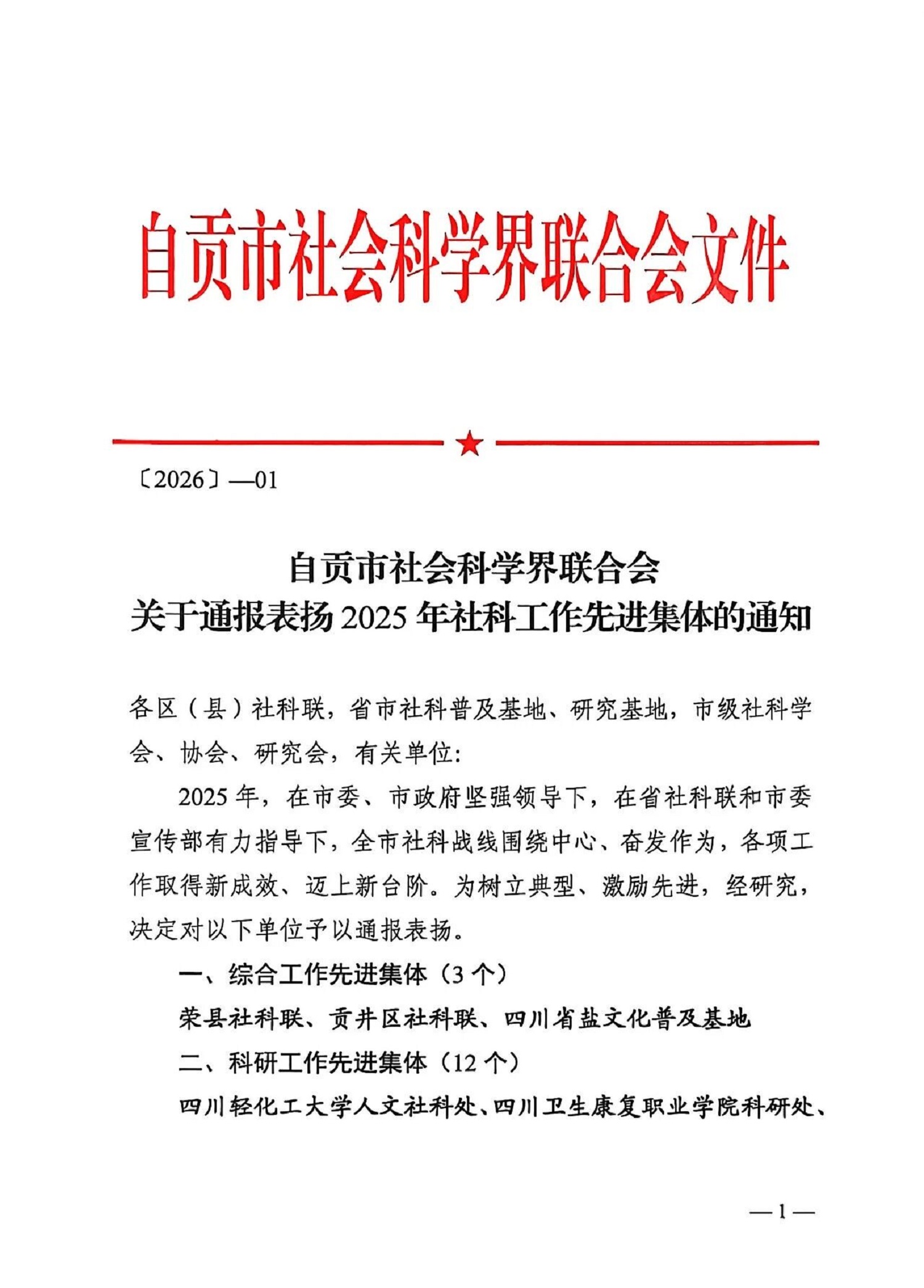近日,自貢市社會(huì)科學(xué)聯(lián)合會(huì)《關(guān)于通報(bào)表揚(yáng)2025年社科工作先進(jìn)集體的通知》名單中,江姐故里紅色教育基地榜上有名!