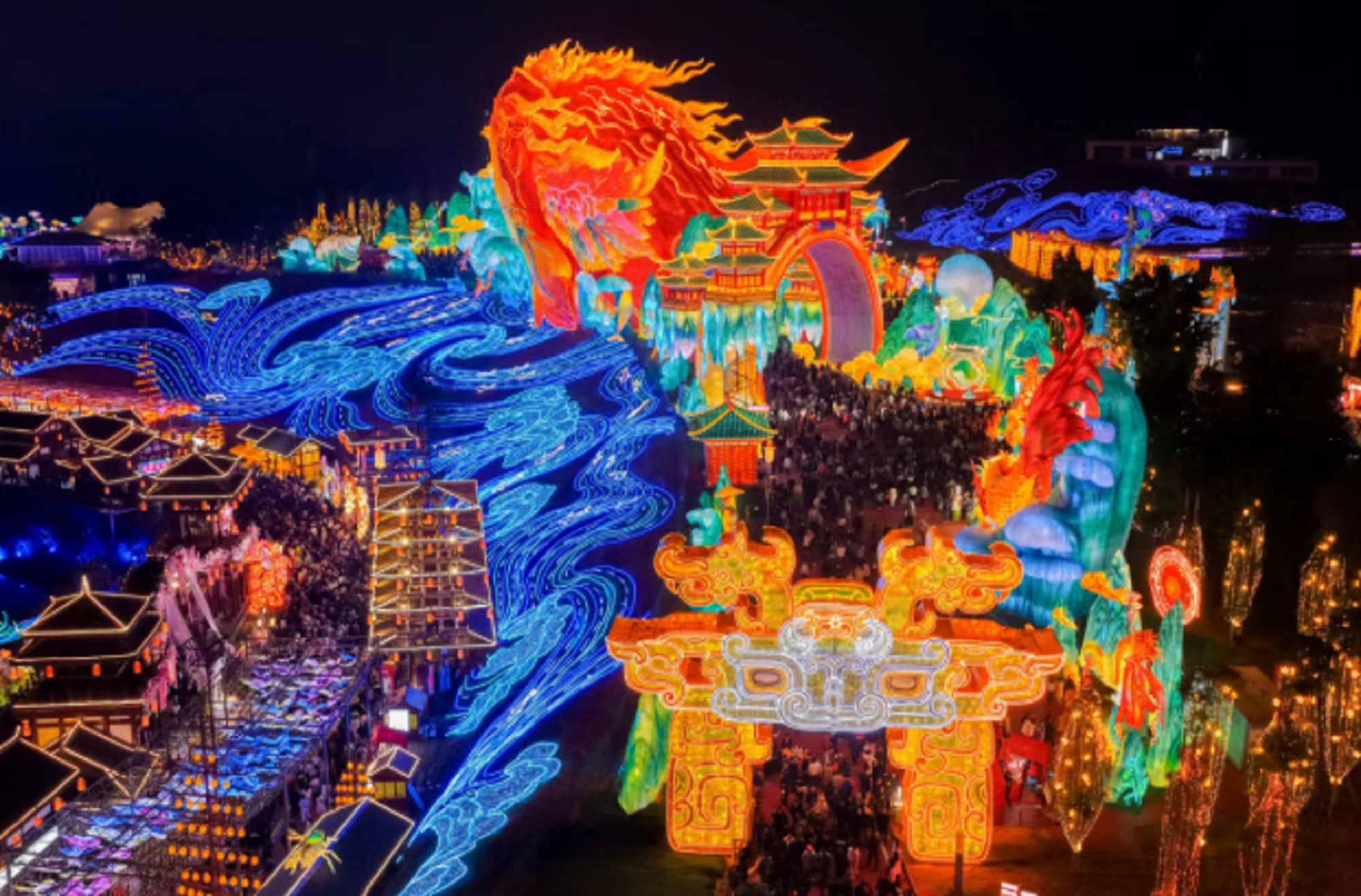 2月12日晚,自流井老街2026“逐光藝術生活季”盛大啟幕,標志著老街一期全面完工,河岸水街區(qū)域的正式全新亮相。